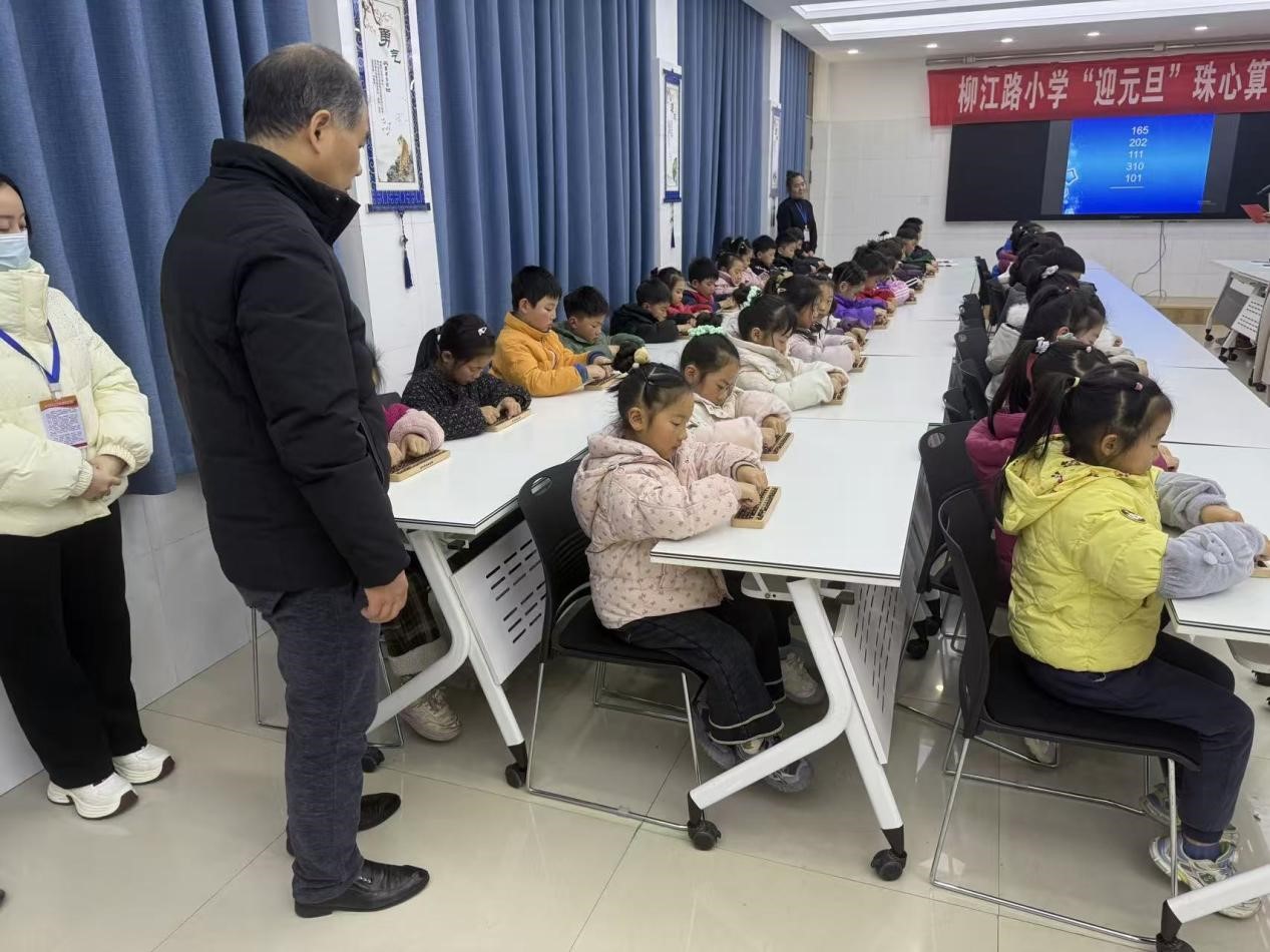 冬日暖阳洒校园,珠算声声启智慧。2025年12月23日,漯河源汇区柳江路小学成功举办第十八届“迎元旦”少儿珠心算展示活动,源汇区教育教学研究中心主任肖志刚,教研员李平华、邢燕老师莅临现场观摩指导,来自一、二、三年级的学生参与展演,在指尖拨珠间传承中华优秀传统文化,在场师生共同见证一场传统文化与数学思维碰撞的盛宴。
