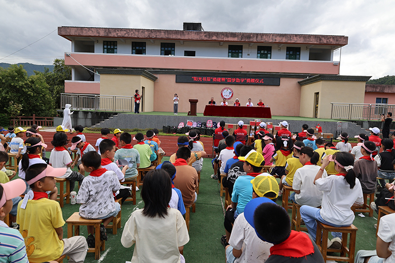 9月19日上午9时,福建省南平市松溪县旧县中心小学,迎来了深圳市志愿者联合会赛会展会组的志愿者,在学校操场上学生与志愿者相拥而笑,沐浴在欢乐的阳光下,正准备一场“搭建阳光”书屋的爱心捐赠助学活动议式。