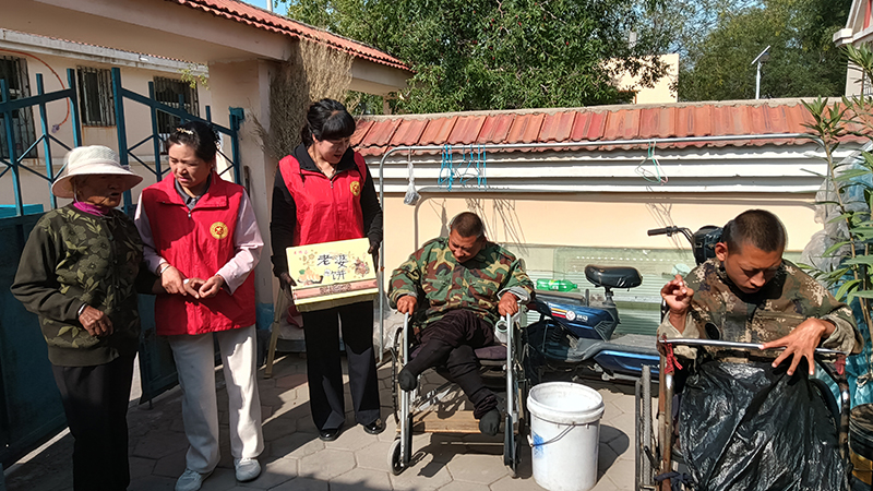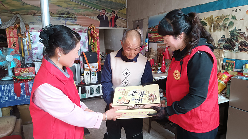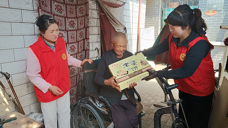 志愿者走进家家户户,围坐在炕前,亲切地拉着老人的手同老人及家属认真交谈,嘘寒问暖,详细了解老人的身体状况和生活情况,听取他们所想、所盼、所需,向他们致以诚挚的节日问候和祝福,并送去中秋月饼等慰问品。