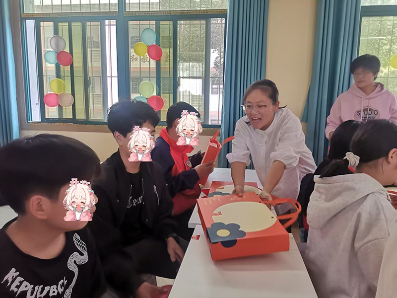 红色精神,薪火相传。活动特邀众诚社工中心“军烈情”烈士寻亲志愿服务队队长秦祖和,讲述大别山“刘胡兰”——少年英烈林清芝的感人事迹。这段扎根红安土地的英雄故事,深深震撼着孩子们的心灵,激发起对革命先烈的崇敬之情,进一步增强了民族认同与文化自信。月圆人团圆,国泰民安康。在温馨的互动环节,社工与爱心妈妈为孩子们送上月饼和学习用品,并与他们共切节日蛋糕,同庆新中国76周年华诞。欢声笑语中,一份份礼物不仅递到孩子们手中,更将社会的关爱与温暖深植其心田。