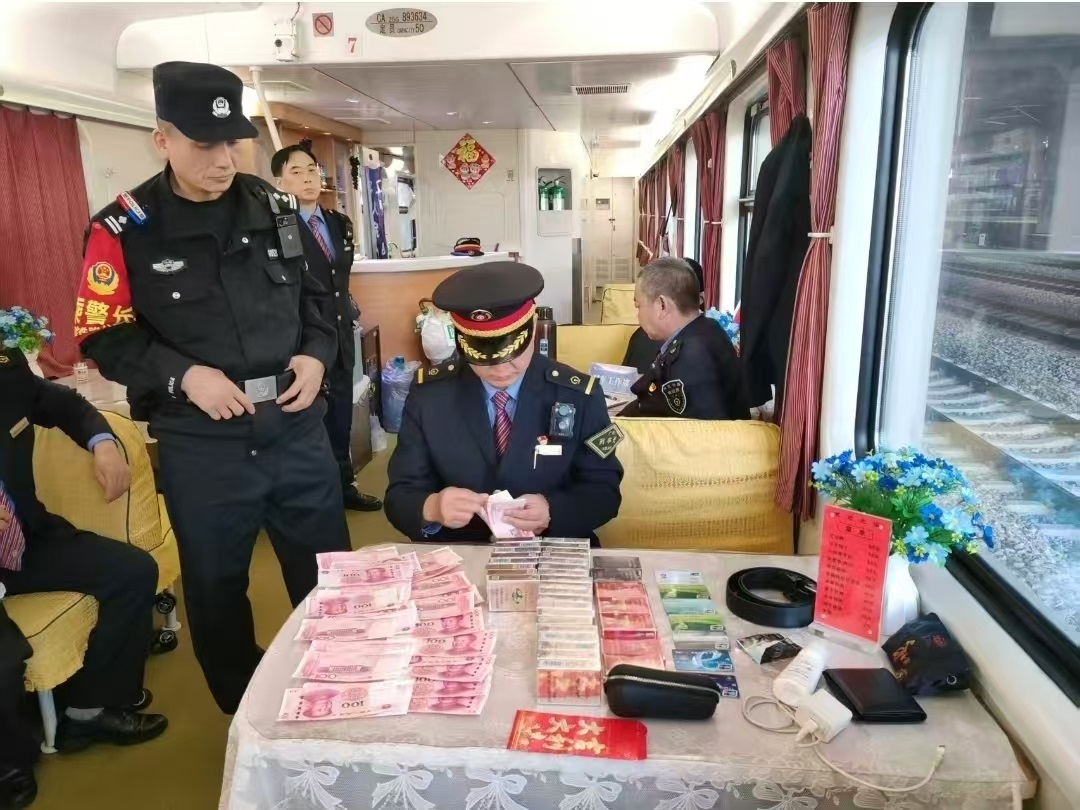 邹玉香当即用对讲机通知列车长王朝林、侯志勇乘警长黄文辉,及包保干部欧洁队长及时赶到现场,对遗失物品进行清查。