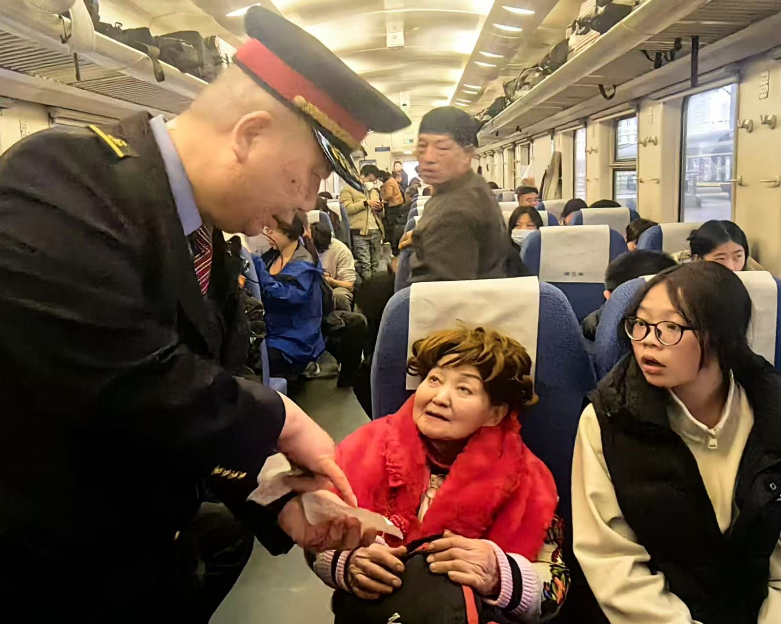 17号车厢116号座位上,林女士静静望着窗外飞逝的风景。而列车长李彦文已悄悄来过两次,正为她提供着周到的服务。第一次送来温水,第二次轻声询问是否需要帮助拿取行李。作为重点照顾旅客,林女士的每一个需求都被细心留意,一路小心护送。“就像家人一样细心。”林女士感慨地说。