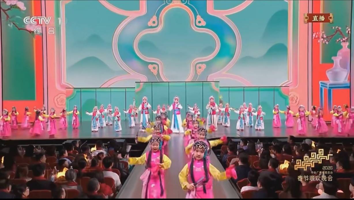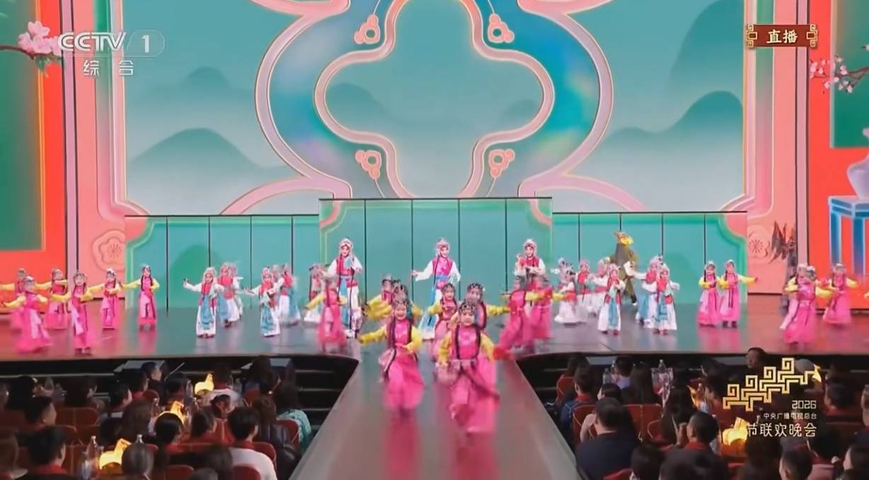 丙午马年除夕夜,总台春晚戏曲节目《春晖满梨园》中,一对六岁的双胞胎小花旦格外引人注目。来自北京某幼儿园的甘桐闻、甘桐语姐妹,身着绯红戏服,头戴点翠珠花,以纯真稚趣的表演,为传统戏曲注入了一抹灵动春色。