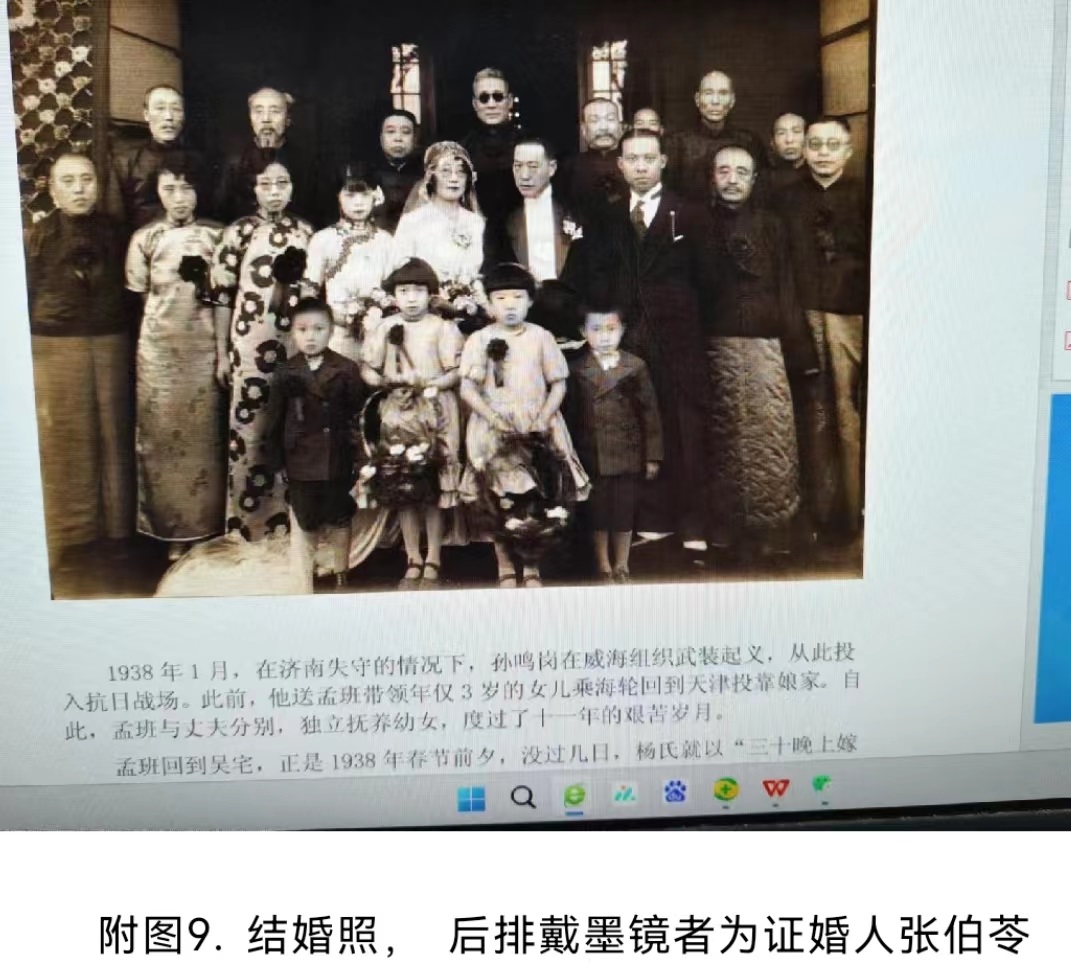 1938年1月,在济南失守的情况下,孙鸣岗在威海组织武装起义,从此投入抗日战场。此前,他送孟班带领年仅3岁的女儿乘海轮回到天津投靠娘家。自此,孟班与丈夫分别,独立抚养幼女,度过了十一年的艰苦岁月。