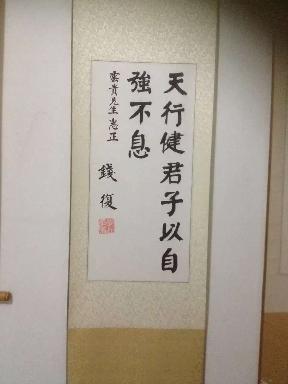 我每天望着挂于我家客厅中的钱先生之墨宝。不禁使我回忆起我家、钱家乃至我整个中华民族百余年来之坎坷历史。真乃是九死而一生、历经劫难而不衰。这大概就是天行健和钩玄之意思吧!
