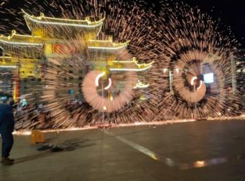 “古镇迎宾客 滇超燃峨山”迎宾晚会精彩上演,汇集昆明、红河、楚雄、德宏、西双版纳等州(市)的精品非遗节目及峨山本地的彝族敬酒歌、传统歌舞轮番登场,尽显彝乡热情好客之道。更有打铁花、风火轮、火壶等非遗绝技震撼亮相,绚烂火光与欢呼声交相辉映,随后的彝族打歌环节将氛围推向高潮,大家围着篝火唱彝歌、跳彝迪,沉浸式感受彝族同胞的狂欢热情。