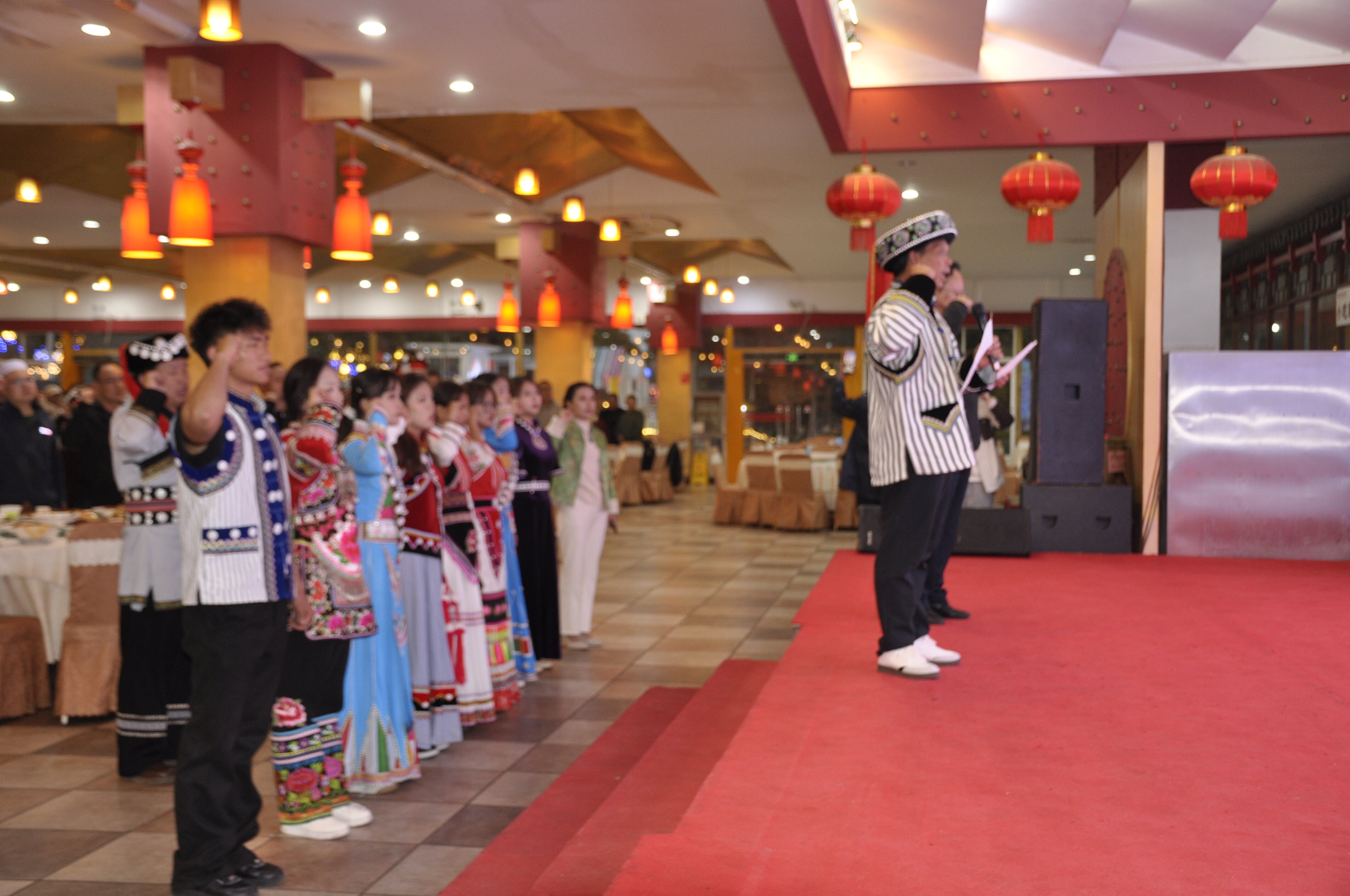 《怒江大峡谷》《武定傈僳酒歌》等节目轮番登场,领导致辞共话佳节,各族同胞围坐一堂,共品特色年饭、共赏精彩歌舞,欢声笑语中洋溢着“共居共学、共建共享、共事共乐”的浓厚氛围。