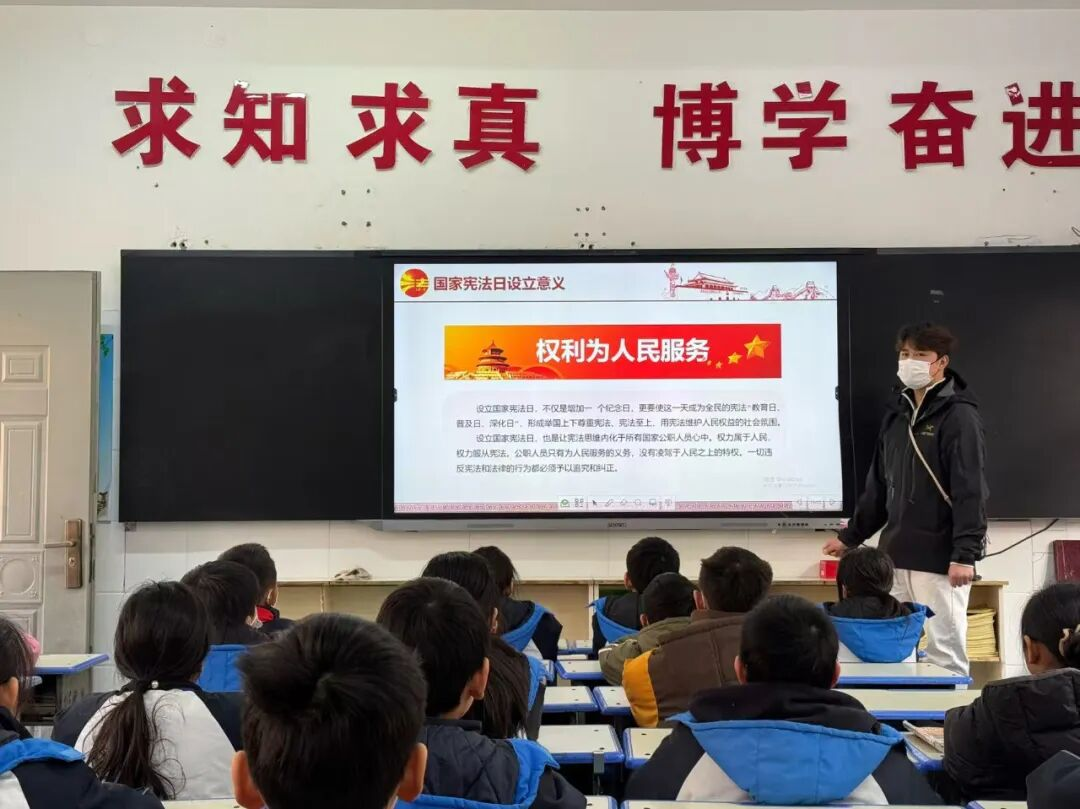 12月4日上午,恰逢国家宪法日,全校师生齐聚教室,共同观看教育系统“宪法晨读”活动直播。同学们身着整齐校服,跟随直播节奏认真跟读宪法条文,声音洪亮、神情专注,在庄重的氛围中感受宪法的威严与神圣,进一步理解宪法作为国家根本大法的重要意义。