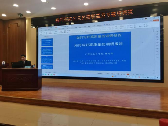 在中共梧州市委统战部、中国致公党梧州市委的大力支持和热情邀请下,林忠伟(广西)产教科咨政联盟团队6-7日赴梧州考察调研,并开展参政议政工作交流活动。林忠伟教授授课的《如何写好高质量的咨政(调研)报告》深入浅出,通俗易懂,满接地气,获得赞誉,听课者纷纷表示获益匪浅。本次参政议政交流活动,初步了解了梧州的优势与产业发展的趋势,对梧州再振雄风充满信心。林忠伟 韦良军 施勇 赵晓阳 蒋云蕙 甘勇 宁剑 黄章恒 郑小宇