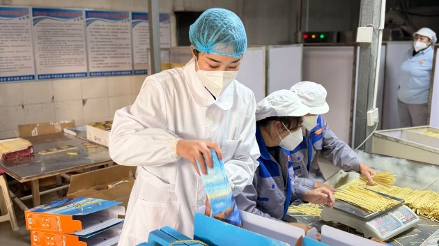走进“飞飞面条”的生产车间,负责人刘飞的身影在光影斑驳中穿梭,目光如炬地审视着一排排悬挂晾晒的面条。刘飞,这位土生土长的东川妹子,深知每一根面条的分量。她用指尖轻触,检查干度是否均匀,韧性是否达标——这看似寻常的动作背后,蕴含着东川人对传统味道的坚守,对百年工艺的敬畏,以及对这片土地的深情回馈。严格把牢生产品质关,是她创立“飞飞面条”品牌的初心。