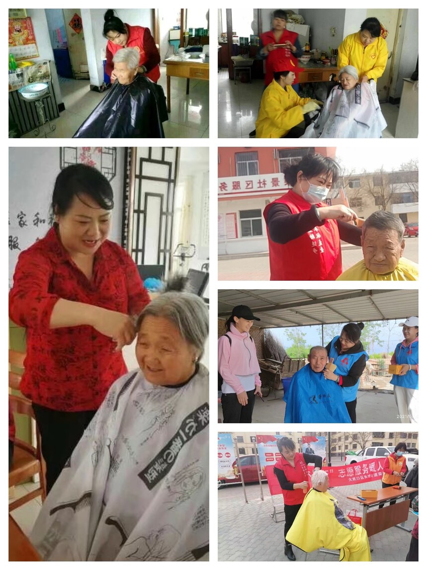 郭爱霞现在居住的荣景社区是一个老旧社区,社区内的老年人占一大部分。由于经常参加义务活动,对她内心的触动很大,她想自己能够为这些老人做些什么,经过了一番深思熟虑,她决定“重操旧业”。2010年,经过社区领导的批准,社区专门为她搭建了一个,免费定期为辖区所有老人理发的平台,于是在每月6号,便有了免费给老人理发的活动。辖区有好多失能半失能,孤寡失独家庭的老人,她提出了上门为服务,自此便成了社区内一道亮丽的风景线。