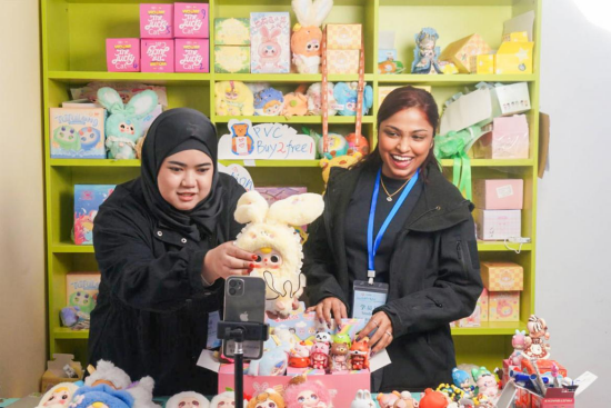 来自新加坡南洋理工学院的大学生在中国文化创意产业出海—潮玩盲盒跨境电商实训基地体验跨境电商直播