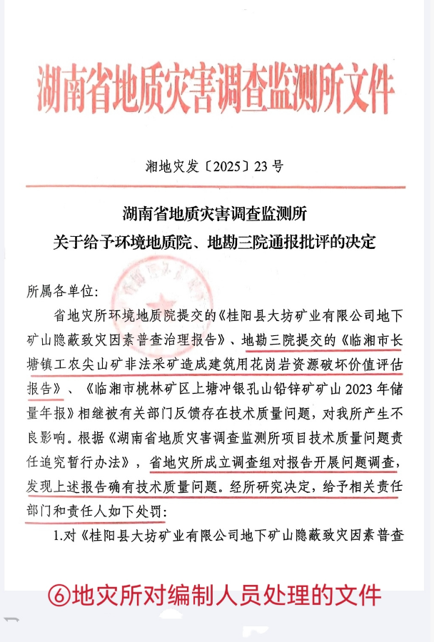 家属及代理方对此提出强烈质疑,认为该评估报告存在严重质量问题。据悉,该报告由临湘市自然资源局、公安局共同出资70万元委托出具,但湖南省地质灾害监测所在内部文件中承认报告“确有技术质量问题”,并对编制人员作出免职调离、通报批评、罚款等处理。而自然资源部2023年通报显示,湖南部分地质勘查单位存在勘查设计不规范、成果质量不合格等问题,已被纳入重点监督范围 。