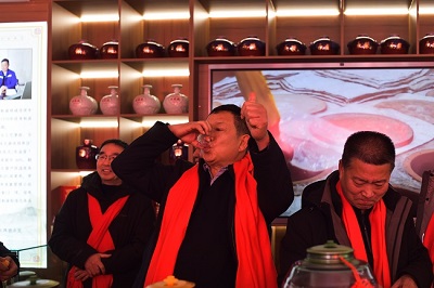 活动现场,曹志平与大同赋灵丘体验店经理阎军明共同为体验店揭牌,揭牌后众人进店品鉴大同赋佳酿、开展互动交流,共话合作与发展。