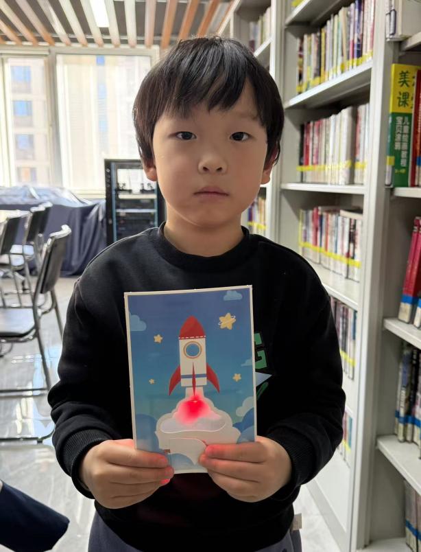 动手实践环节,孩子们在老师指导和图文手册指引下有条不紊地创作。低龄孩子在老师协助下完成关键操作,高龄孩子则自主设计电路路径,部分还尝试添加多颗LED灯探索串并联应用。遇到问题时,大家或求助老师或小组协作,在解决问题中积累经验。