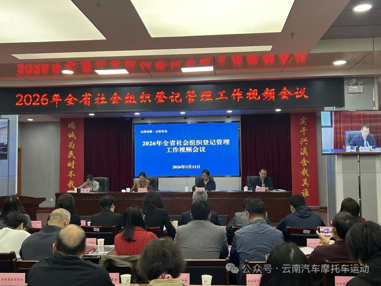 【北京新闻网】讯 (记者 司孟奇) 3月11日,云南省民政厅组织召开2026年全省社会组织登记管理工作视频会议,深入贯彻全国民政工作会议精神和社会组织管理工作要求,总结工作成效,分析当前社会组织发展新形势,部署年度重点任务,推动全省社会组织高质量发展。省民政厅相关负责同志、社会组织党委及社会组织管理局负责人,以及荣获“全国先进社会组织”称号的5家云南社会组织、2025年等级评估为3A级以上的50家全省性社会组织代表参加主会场会议。